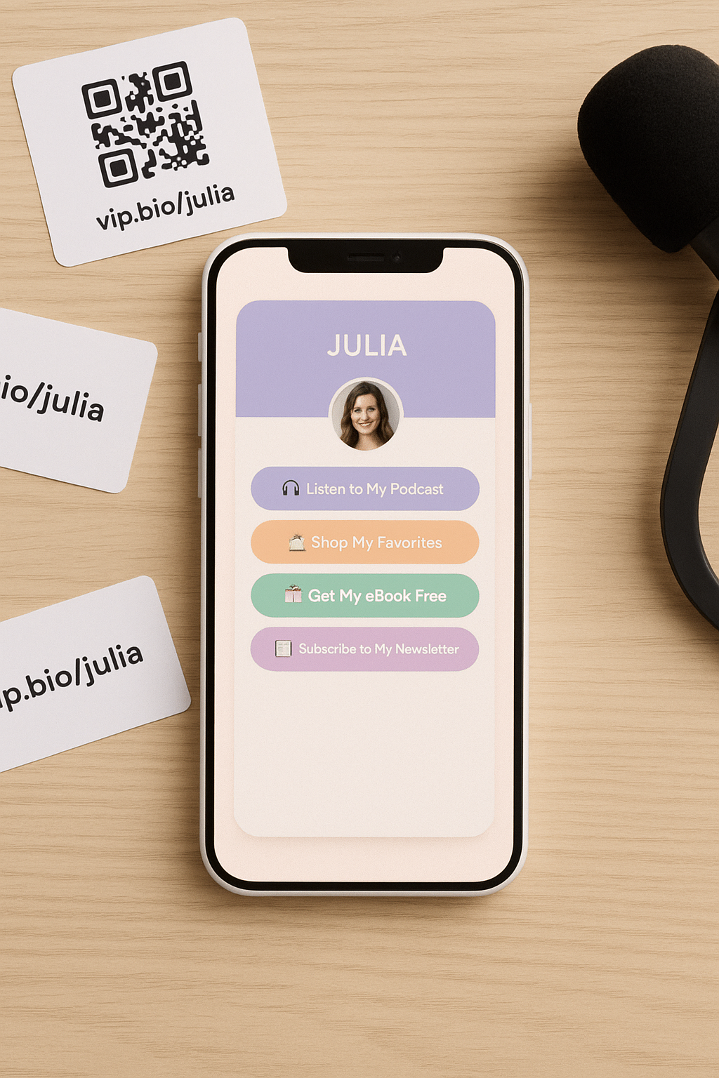 “All links are at vip.bio/julia!”